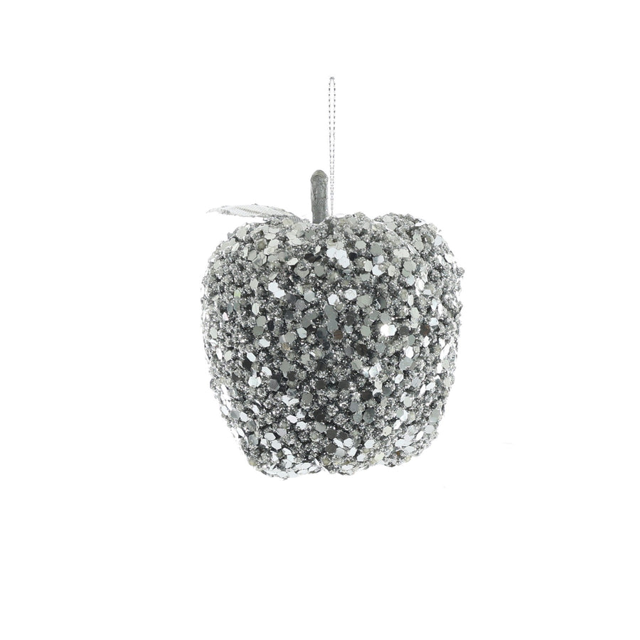 Glittered Hanging Apple - Silver (8cm)