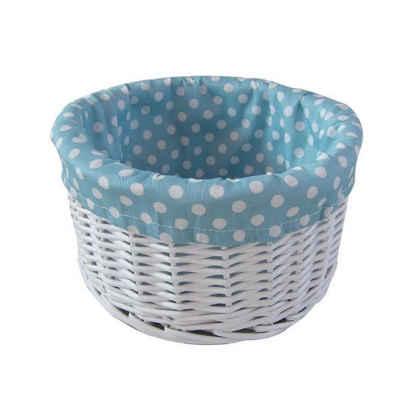 Painted wicker basket with blue polka dot lining - (23 x14cm)