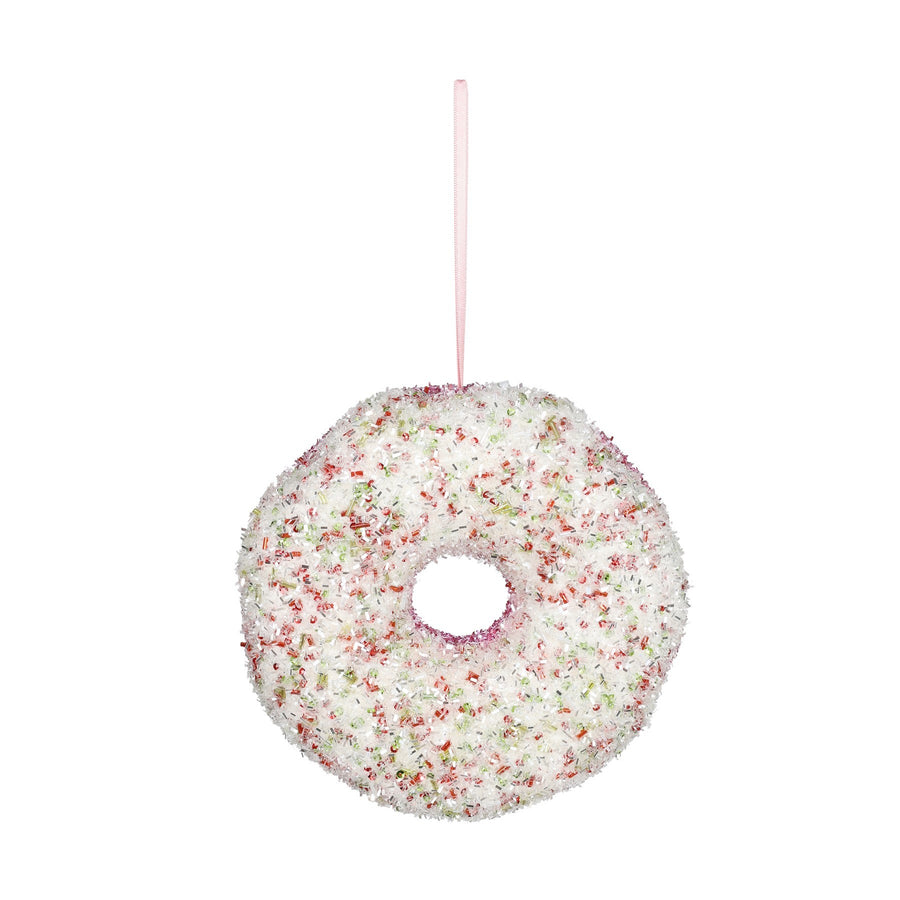 Pink and White Glitter Donut Hanging Decoration (16cm)