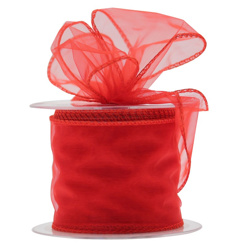 Red and White Striped Fabric Ribbon (63mm x 9m)