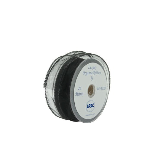 Black Wired Ribbon with Gold Spruce Leaves (63mm x 10 yards)
